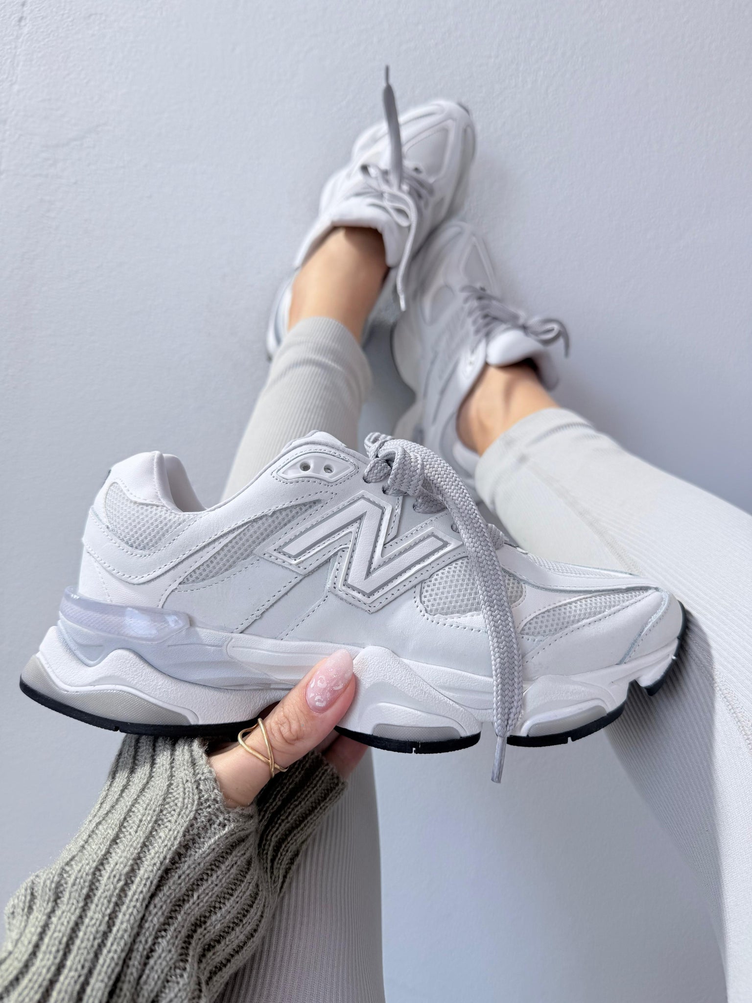 O Gelo traz ao New Balance 9060 uma paleta suave e sofisticada, marcada por tons claros que conferem leveza e versatilidade ao visual. Essa estética limpa realça o design moderno e técnico do modelo, equilibrando detalhes contemporâneos com um perfil urbano refinado.